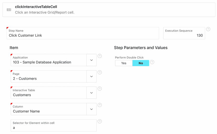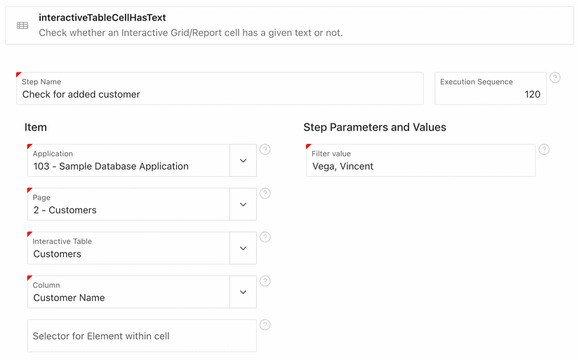 We had improving interacting with the interactive table components in APEX on our agenda for a while now. With this release, we've added three new steps to make searching, checking a value in a cell and clicking something in a cell.