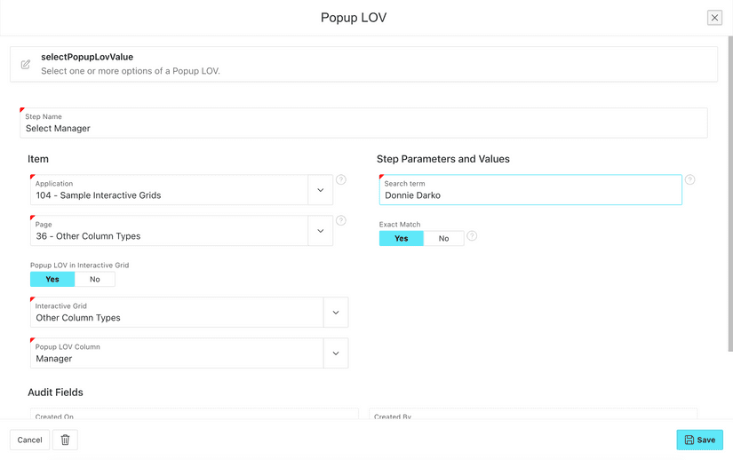 Popup-LOV Step