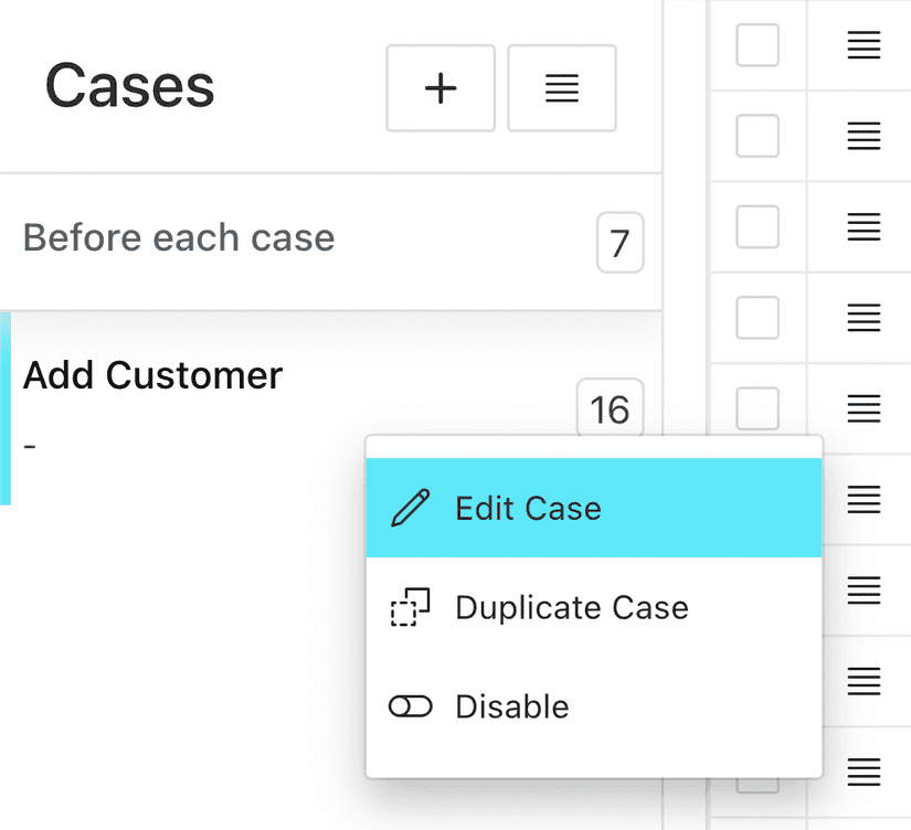 We've added a context menu to the case list. This menu allows you to quickly edit, duplicate enable and disable any case.